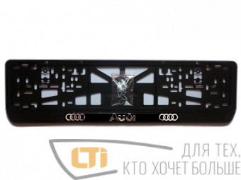 Рамка номера пластиковая AUDI с защелками и рельефными хромированными буквами логотипа автомобиля.