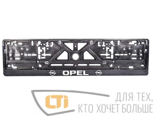 Рамка номера пластиковая OPEL с защелками и рельефными хромированными буквами логотипа автомобиля.